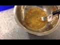 - In a heavy saucepan over medium heat, mix together the peanut butter, corn syrup and sugar. Bring to a boil, remove from heat.